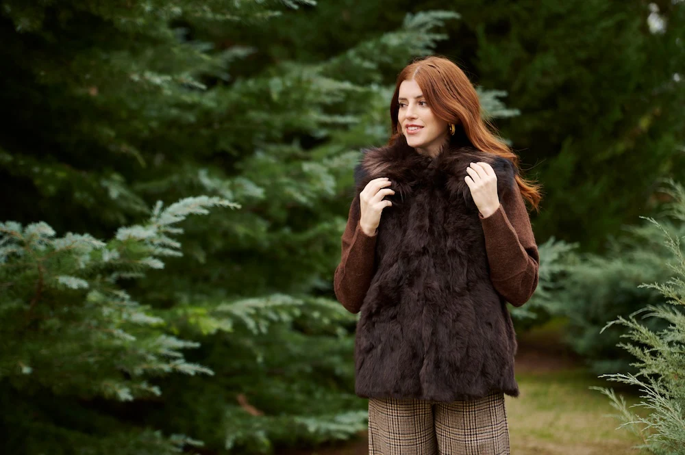 Chaleco Piel Natural Marrón Cuello