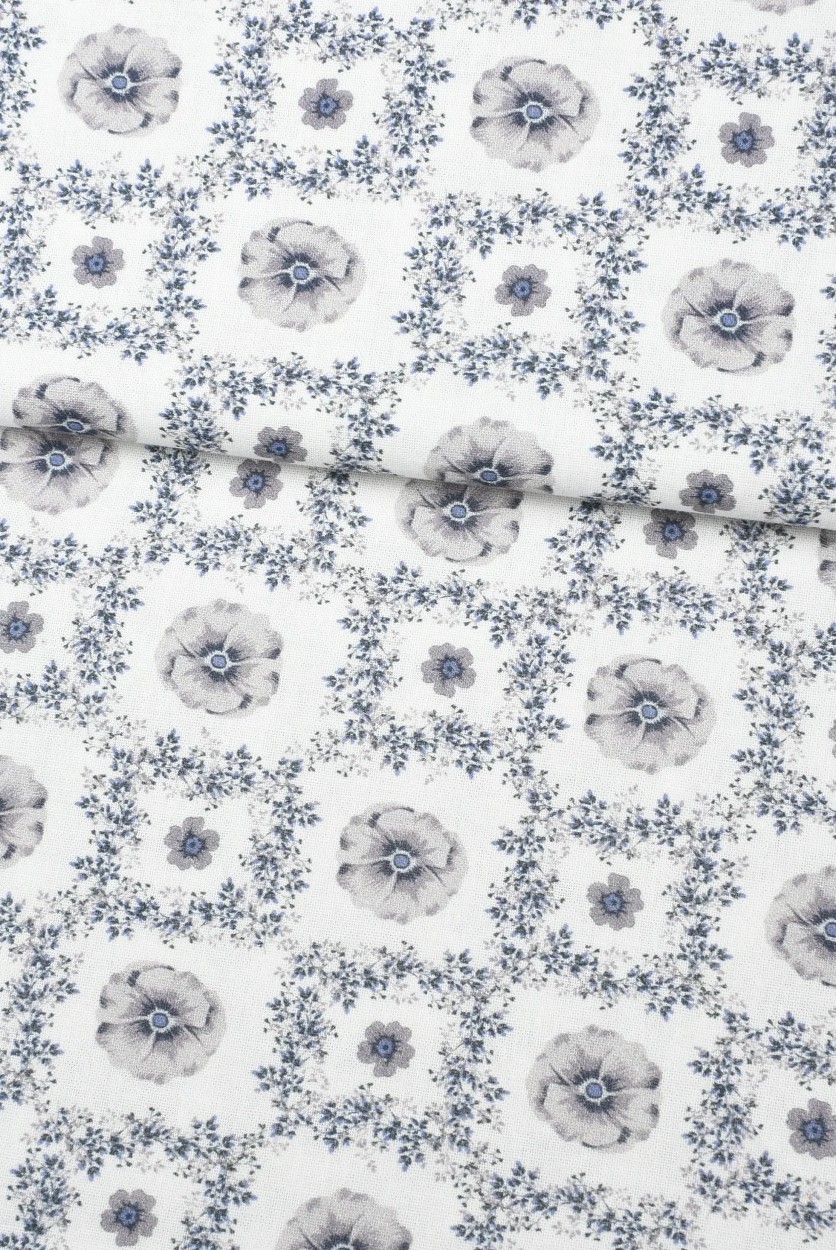 Tejido Popelín Flores Grises