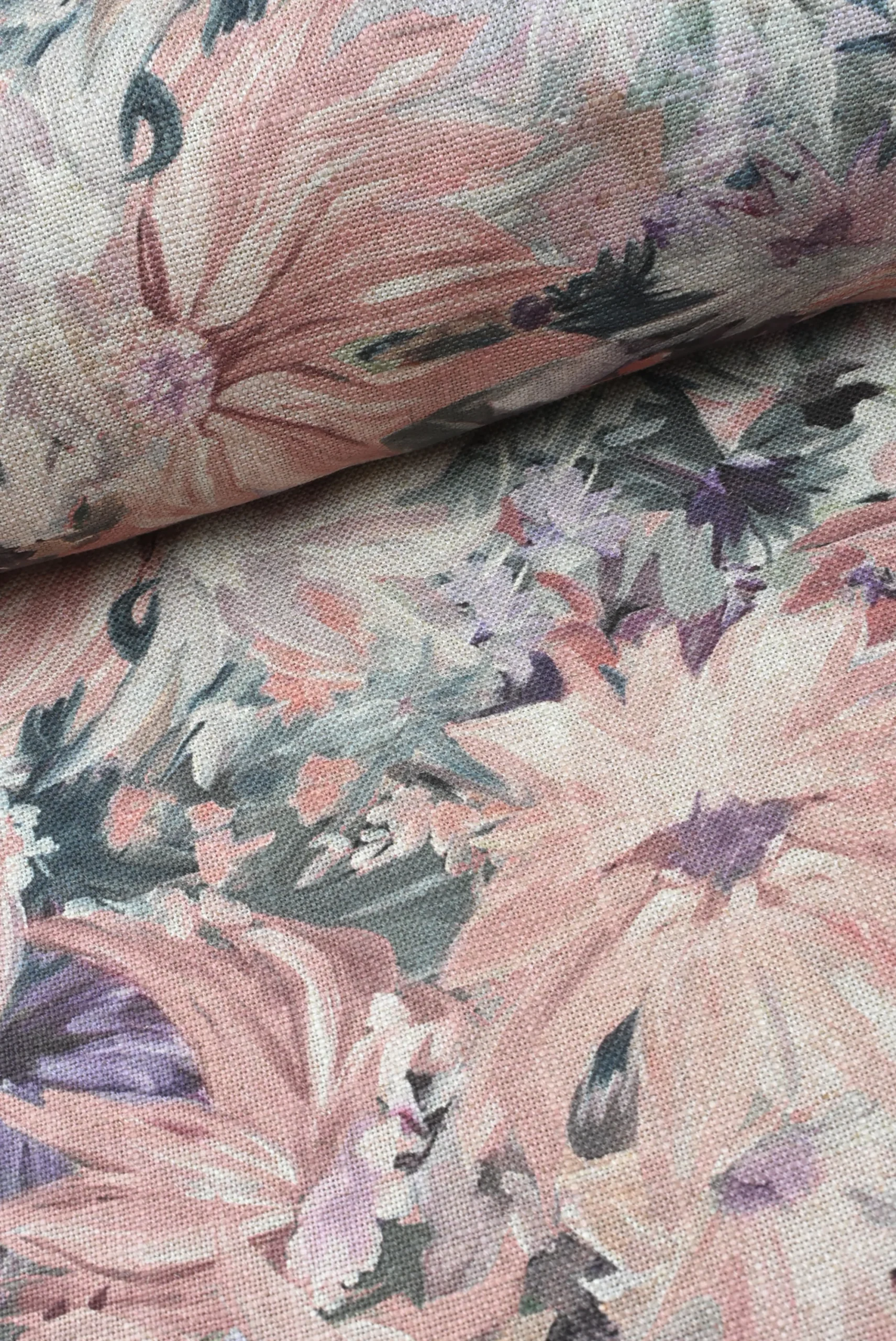 Tejido Viscosa Lino Flor Rosa